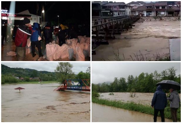 I iza građana Sanskog Mosta, gde je juče proglašeno stanje prirodne nepogode, besana je i teška noć. Kako prenosi "Dnevni avaz" iz Sanskog Mosta, oko 100 pripadnika civilne zaštite i lokalnog stanovništva vodilo borbu sa vodenom bujicom.