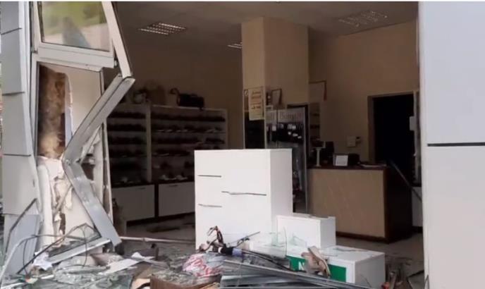 Veliki izlog je polupan, a ispred njeda leži jedno drvo. Kako ATV nezvanično saznaje, izlog je polupala devojka iz Teslića čiji su inicijali S.J. koja je automobilom izletela sa kružnog toka. Izgubila je kontrolu i udarila u poslovni prostor.