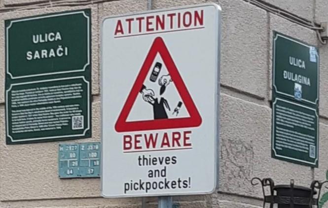 U sarajevskoj ulici Sarači postavljen je znak koji turiste upozorava na lopove i džeparoše.