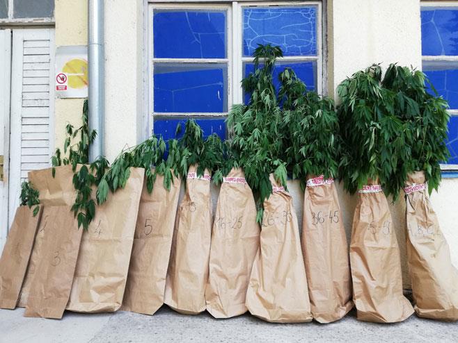Pripadnici Policijeske uprave Trebinje otkrili su plantažu marihuane u mestu Marić Međine kod Trebinja i uhapsili dva lica.