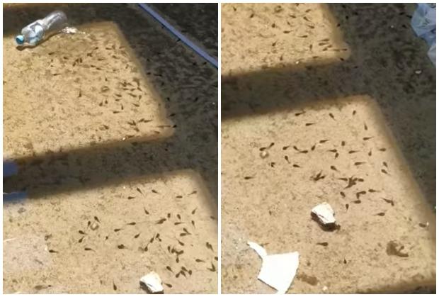 Određena vrsta vodenog života, lokalni mediji prenosi da su u pitanju punoglavci, nastanili su se u podzemnom prolazu kod nedavno otvorenog tržnog centra.