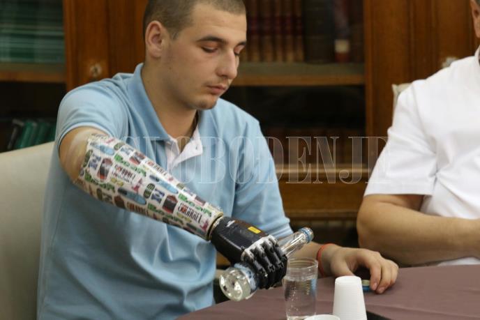 Ermin Omerović (19) iz Jajca demonstrirao je na pres-konferenciji u Kliničkom centru Univerziteta u Sarajevu da desnom, protetičkom rukom može da radi skoro sve što i ljudi koji imaju sreću da imaju sve svoje udove.