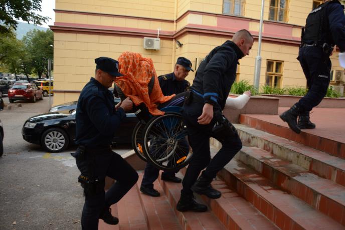 Njeno dovođenje iz Sektora kriminalističke policije Ministarstva unutrašnjih poslova Hercegovačko-neretvanskog kantona pred zgradu Kantonalnog tužilaštva bilo je neuobičajeno s obzirom na to da je iz policijskog vozila, zbog lomova kostiju oba stopala, iznesena u invalidskim kolicima, dok je lice prekrila narandžastom maramom.