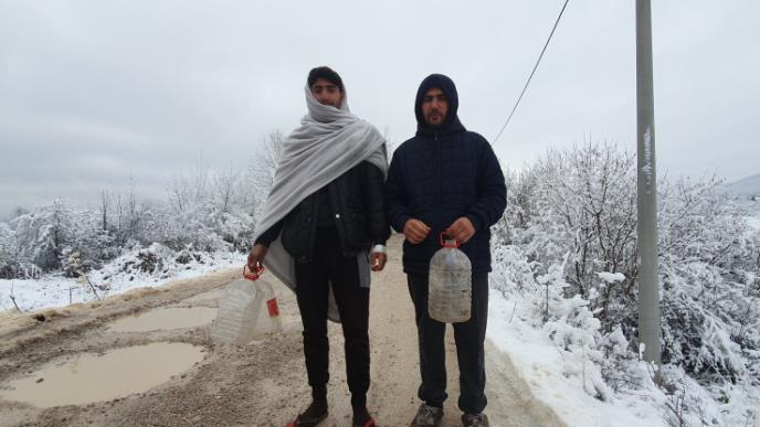 U Vučajku opet nije bilo pitke vode. Pojedinci su sa kanisterima krenuli u Zavalje, ali su komšije zavrnule ventile da ne bi cevi zaledile i popucale. Pa su migranti topili sneg i pili!