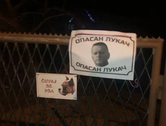 Nepoznati banjalučki aktivisti postavili su u utorak uveče na kapije dvorišta i stubove ulične rasvete fotografije sa likom ministra policije RS Dragana Lukača uz natpis "Opasan Lukač" i "Čuvaj se Lukača".