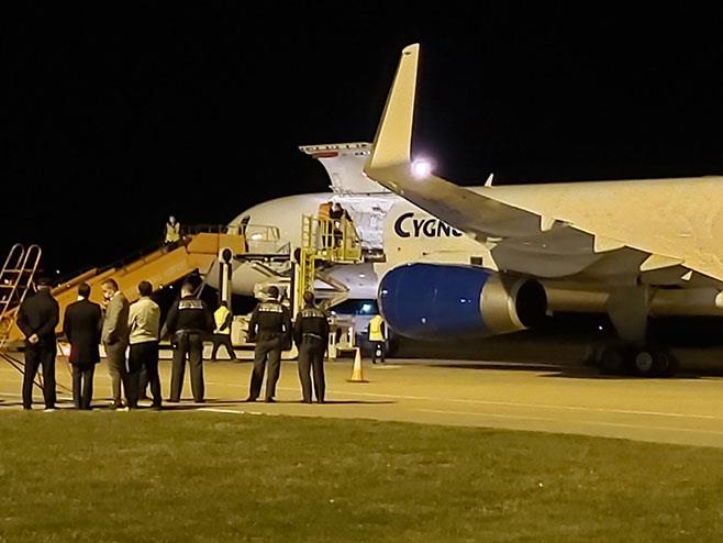 Srpski član Predsedništva BiH Milorad Dodik dočekao je na banjalučkom aerodromu avion sa prvim kontingentom opremom za mobilnu bolnicu koju su preuzeli predsednik Vlade Republike Srpske Radovan Višković i ministar zdravlja i socijalne zaštite Alen Šeranić.