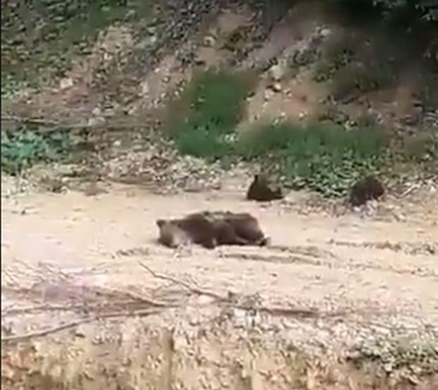 Na kamenolomu u Kreševu, primećena je medvedica sa dva mladunčeta kako nepomično leži.