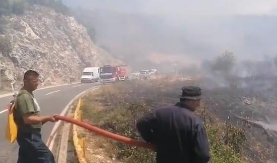 Požar je izbio uz magistralni put Trebinje-Bileća, a saobraćaj se odvija jednom trakom, uz kontrolu policije.