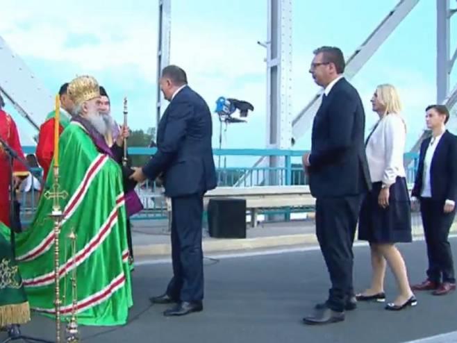 U Rači je u toku obilježavanje Dana sećanja na sve stradale i prognane Srbe u hrvatskoj vojno-policijskoj akciji "Oluja", a na mostu su se sreli predsednik Srbije Aleksandar Vučić, srpski član Predsedništva BiH Milorad Dodik predsednica Srpske Željka Cvijanović i premijerka Srbije Ana Brnabić.