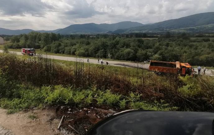 Od siline udara oba vozila su sletela s puta. U toku je uviđaj nakon kojeg će biti poznato više detalja.
