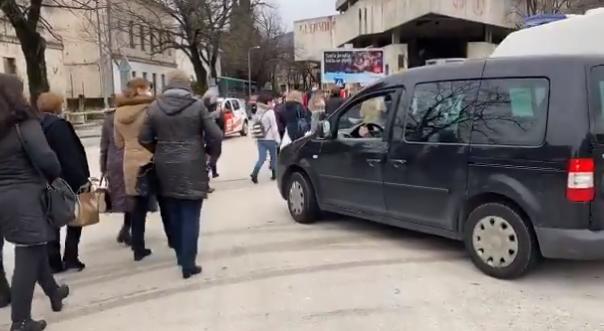 Vozač je šeleo što pre da prođe kroz kolonu, pa je i trubio, ali je to zasmetalo demonstrantima koji su se kretali ka zgradi Vlade Hercegovačko-neretvanskog kantona.