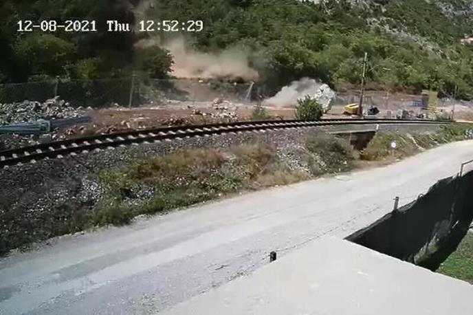 Ogromni kamen skotrljao se sa brda, probio ogradu, pao prvo na prugu, a onda i na lokalni put. Pre toga je u samo par centimetara prošao kraj bagera.