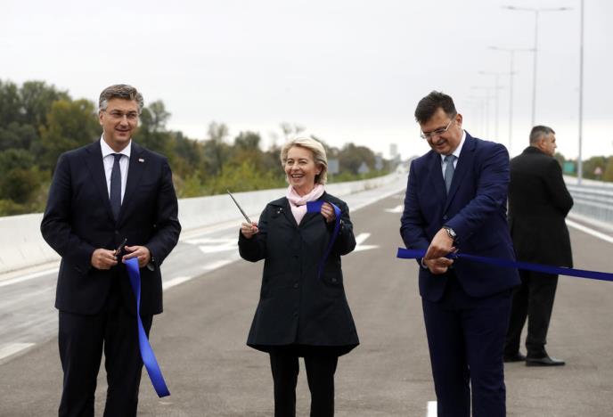 Predsednica Evropske komisije Ursula fon der Lajen danas je sa liderima BiH i Hrvatske svečano otvorila most Svilaj, novi granični prelaz između te dve zemlje, i deset kilometara autoputa.