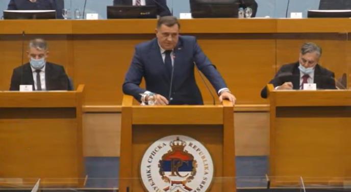 "Odgovor RS mora biti snažan, što se krijete, što ste kukavice", kazao je Dodik, obraćajući se opozicionim poslanicima, nazivajući njihovu politiku "izdajničkom".