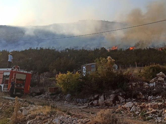 Trebinjski vatrogasci gase požar koji je danas izbio na planini Leotar.