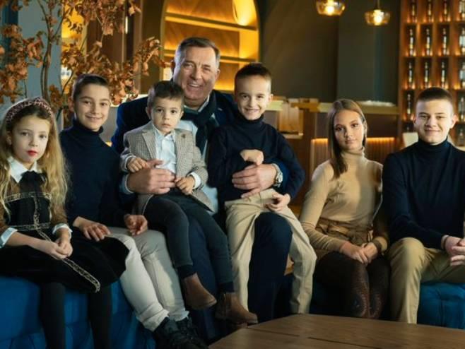 Srpski član Predsedništva BiH Milorad Dodik zajedno sa unucima u krilu čestitao je Badnje veče pravoslavnim vernicima.
