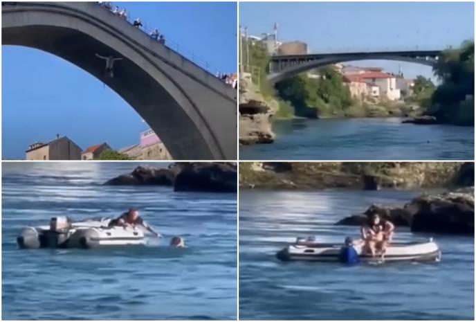 Filmske scene spašavanja mladog Amerikanca sa Neretve, koji nije uspeo da ispliva nakon neuspešnog skoka sa Starog mosta u Mostaru, snimili su njegovi prijatelji. Nisu imali pojma pojma šta će im se dogoditi u avanturističkoj ekspediciji na UNESCO spomenik, piše Kliks.ba.