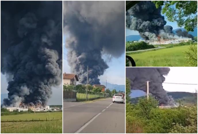 Veliki požar zahvatio je fabriku stiropora Austrotherm u mestu Turija kod Bihaća.