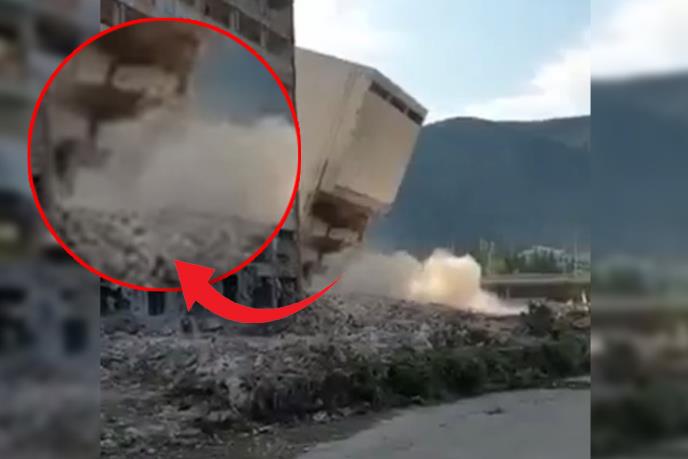 NEMOJ ZAJE*AVAT! OSTADE, BOGA TI! Pogledajte urnebesno rušenje zgrade nekadašnjeg SFRJ giganta u Mostaru MINERI MORAJU NA POPRAVNI