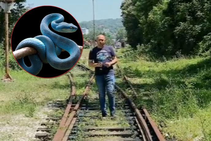 Tokom snimanja priloga Dino je govorio o pruzi hodajući po pružnom prelazu kada je video da je njegovom snimatelju oko noge zmija.
