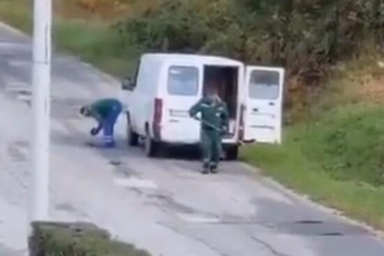 Reč je o mestu u Cazinu, prenosi Srpskainfo a na snimku se vide dva čoveka kako... asfaltiraju put..