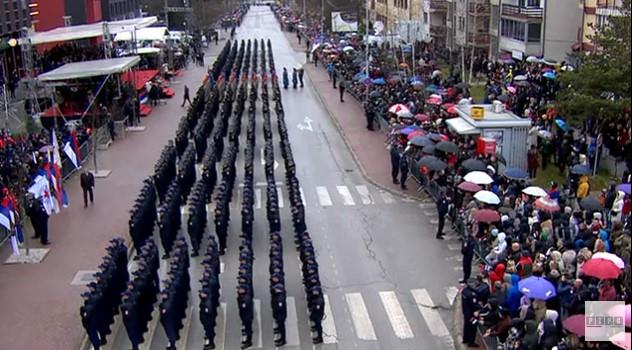 Učesnici policijskog dela svečanog defilea povodom Dana Republike otpevali su pesmu "Pukni zoro"