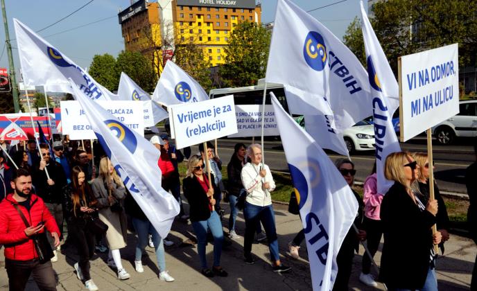 U Sarajevu je danas u organizaciji Sindikata radnika trgovine BiH ispred zgrade Parlamentarne skupštine BiH održan protestni skup pod nazivom "Kada smo mi na redu?", a potom i protestna šetnja do zgrade parlamenta Federacije BiH.