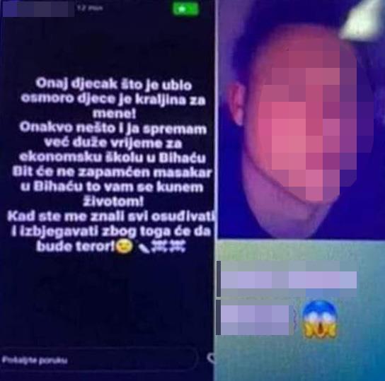 "Onaj dečak što je ubio osmero dece je kraljina za mene! Onakvo nešto i ja spremam već duže vreme za ekonomsku školu u Bihaću. Biće nezapamćen masakr u Bihaću, to vam se kunem životom! Kad ste me znali svi osuđivati i izbegavati, zbog toga će da bude terror", napisao je Zulić