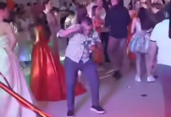 Na snimku se vidi jedan od gostiju na veselju kako istovremeno pleše i jede supu kutlačom iz činije za serviranje?!
