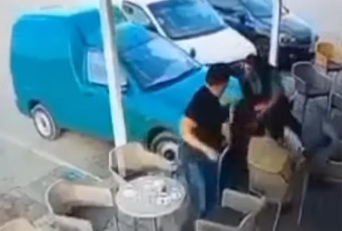 Za stolom su sedele tri osobe od kojih se muškarac u žutoj jakni nije ni pomerio sa svog mesta, kada je vozilo krenulo u njih, prenosi Srpskainfo.