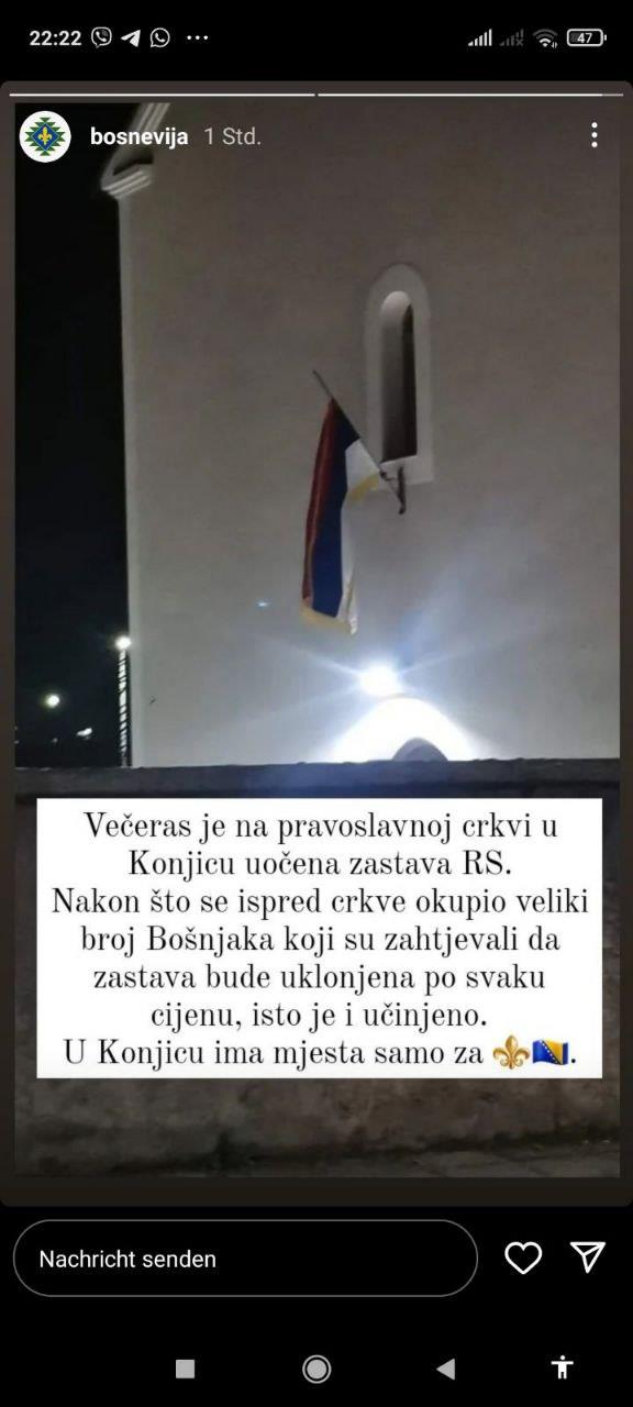 Zastava koja je bila okačena na pravoslavnoj srpskoj svetinji, nakon "okupljanja zabrinutih građana" je skinuta, jer ih "uznemirila".