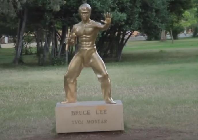 Ukradeni kip legendarnog glumca i majstora borilačkih veština Brusa Lija, koji je u velikom gradskom parku u Mostaru bio postavljen 2005. godine.