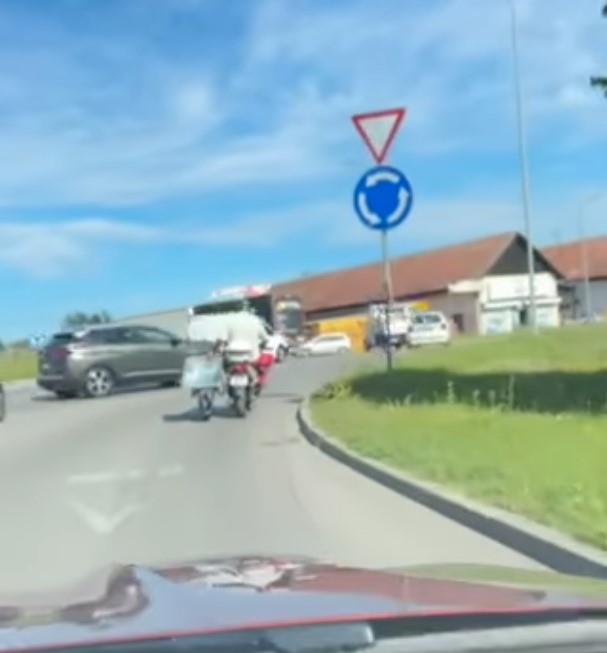 Na snimku koji je poslao čitalac ATV-a, vidi se čovek koji jednom rukom upravlja motociklom, a drugoj drži, verovali ili ne, ručna kolica.