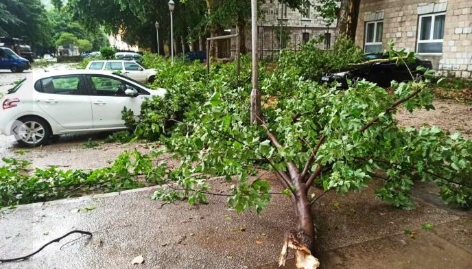 Veliki broj stabala je srušen zbog jakog vetra. Oštećeni su mnogi automobili.