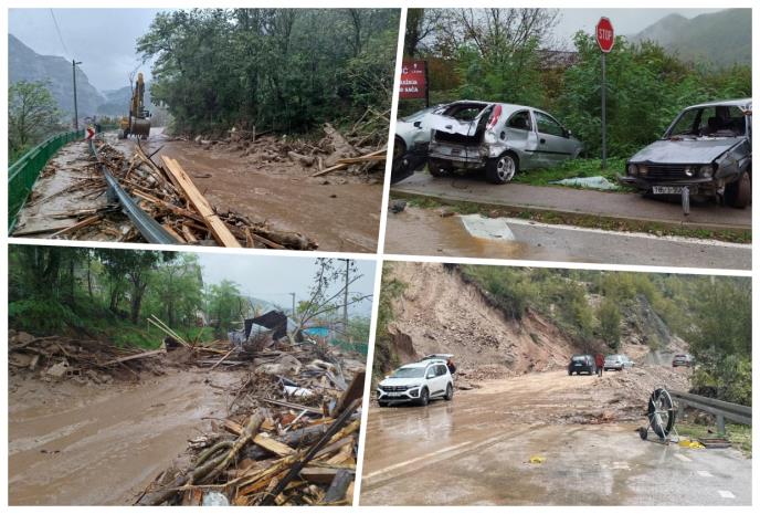 Inače, razmere katastrofe su stravične, skoro ceo grad je zbrisan. Vide se veliki nanosi mulja, kamenja a na ulicama su nagomilani automobili, koje je bujica nosila.