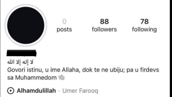 Na njegovom Instagram nalogu piše: "Govori istinu, u ime Allaha, dok te ne ubiju; pa u firdevs sa Muammedom".