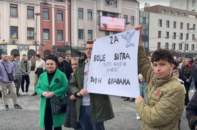 HILJADE LJUDI PROTESTUJE NA ULICAMA TUZLE: Masovni skup studenata i srednjoškolaca zbog poskupljenja javnog prevoza (VIDEO)