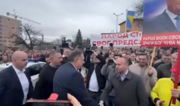 RTRS prenosi da su Dodika ispred kompleksa pravosudnih institucija, dočekali građani uz povike "Mile, Mile!" i uz pesmu "Svilen konac".
