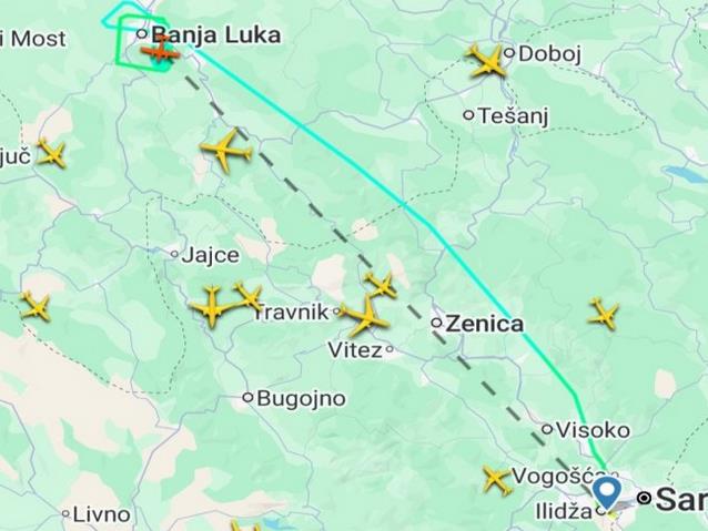 Na nebu iznad Banjaluke ponovo se može videti avion koji je registrovan u Velikoj Britaniji, a koji je danas poleteo iz Sarajeva.