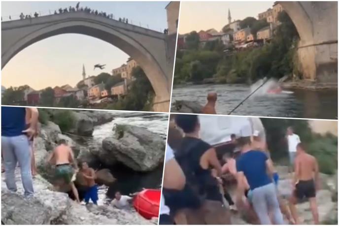 U Mostaru se desio incident kada je strani turista samoinicijativno skočio sa Starog mosta u reku Neretvu nedaleko od gumenog čamca u kojem se nalazilo nekoliko osoba.
