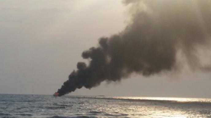 UCLINJ - U blizini Velike plaže u Ulcinju primećena je jahta koju je potpuno zahvatio požar.