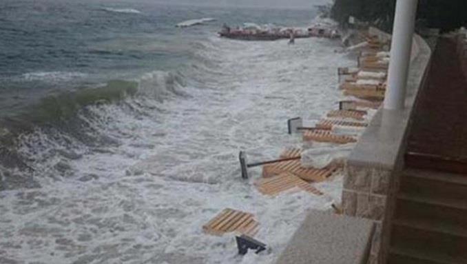 Neki njegovi delovi bili su pod naletima jakog vetra, koji je nosio sve pred sobom. Srećom nije bilo veće materijalne štete ni poplava. Radnici kominalnih preduizeća imali su nekoliko inetrvencija duž magistralnog puta, gde je vetar oborio nekoliko stabala i odakle su uklanjali nanose šuta i šodera koji su nanele bujice. Bilo je i dosta oborenih stabala u Dobrota, Orahovcu, Perastu i Risnu.