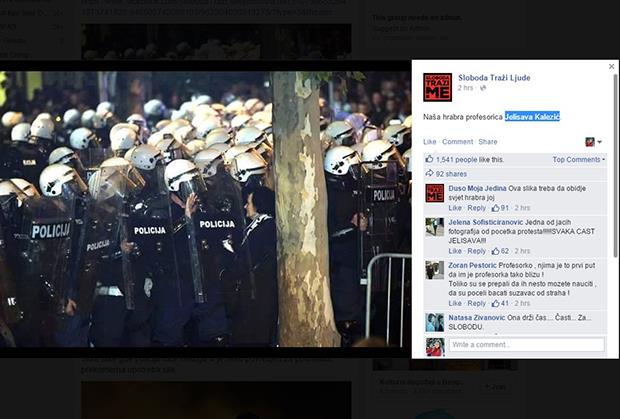 PODGORICA - Jedan od simbola sinoćnih protesta u Crnoj Gori postala je i profesorka Jelisava Kalezić, zahvaljujući fotografiji na kojoj mirno stoji opkoljena specijalcima pod punom opremom.