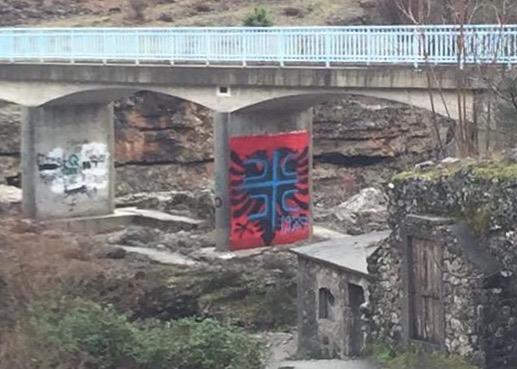 PODGORICA - Preko grafita na stubu mosta na plaži Trgaja na reci Cijevni u Podgorici, na kojem je nacrtana albanska zastava, pre nekoliko dana nepoznate osobe iscrtale su krst sa četiri ocila.