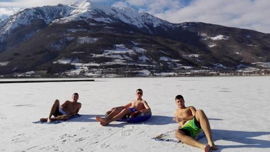 Na njima se vide ovi momci kako gotovo goli sa šlaufom i na peškirima leže na zaleđenom Plavskom jezeru dok je temperatura ispod nule!