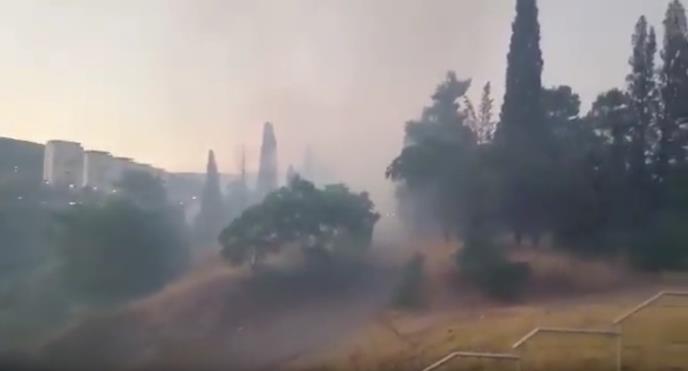 (VIDEO) GOREO CENTAR PODGORICE: Ugašen požar blizu parkinga, Hitne i Gimnazije