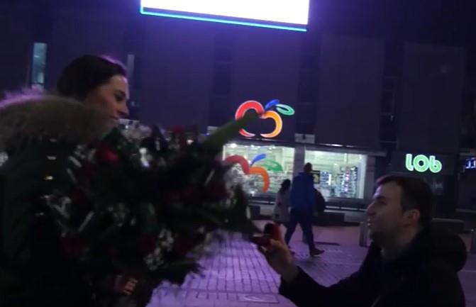 Prohladna noć u Podgorici obeležena je momentom koji se desio na Trgu nezavisnosti kada je u prisustvu mnogobrojnih sugrađana budući mladoženja zaprosio devojku.