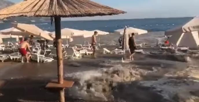 Na plaži u Bečićima pukla je vodovodna cev, a velika količina vode odnela je deo plaže, dok su neki kupači ostali bez svojih stvari. Pričinjena je velika materijalna šteta a Budva, u kojoj trenutno boravi 63.000 turista, trenutno je bez vode.