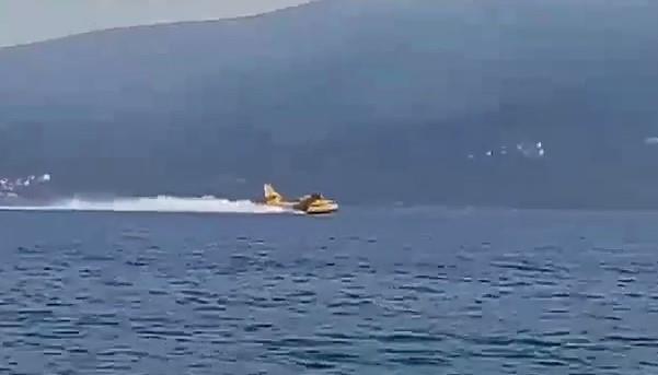 Reporteri Kurira su zabeležili napetu situaciju u okolini Baošića gde su kanaderi skupljali vodu kojom su gasili požare u Luštici.