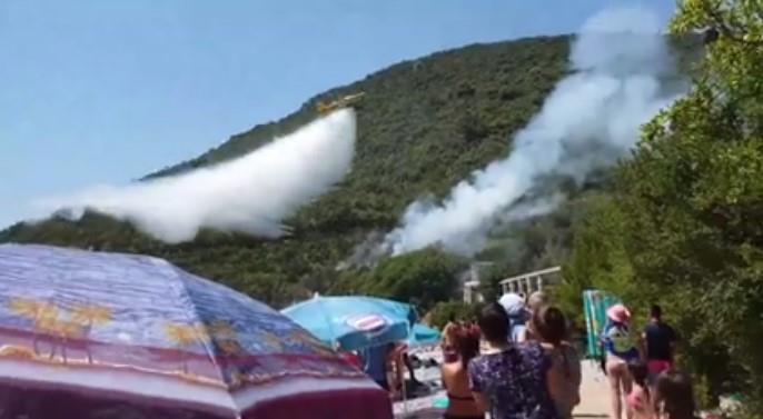 Turisti na plaži Žanjice koja se nalazi na poluostrvu Luštica snimili su najnoviji požar, koji je izbio na svega 20 metara od plaže.